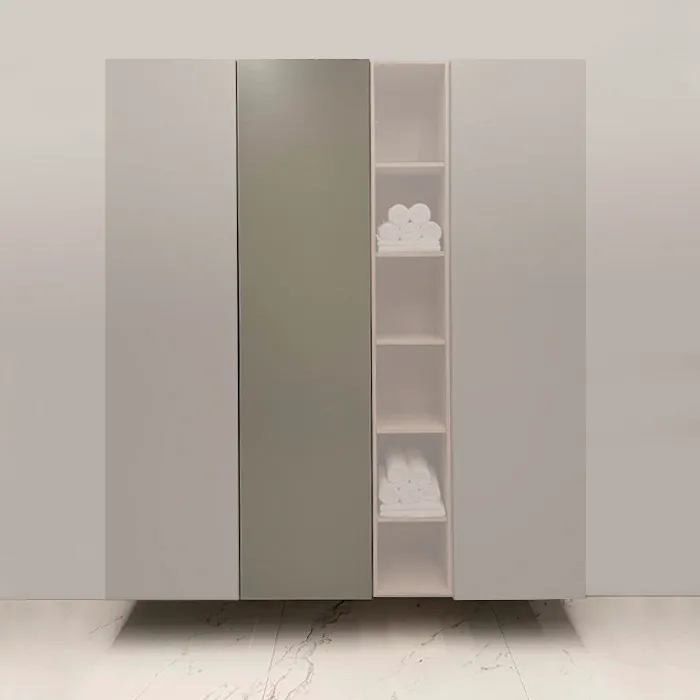 Пенал подвесной Burgbad Sys30 50хh196х37см, SX, петли слева, дверь push-open, 4 стеклянные полки, цвет: Grey matt