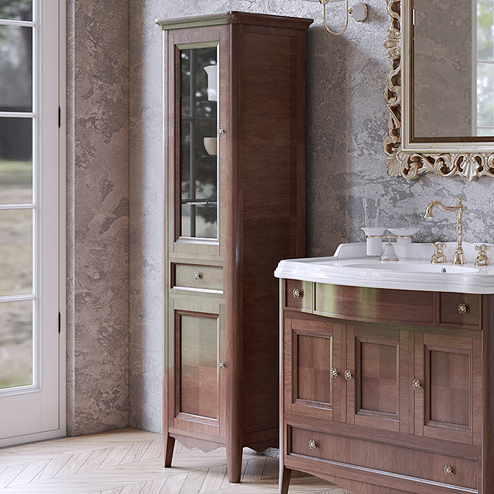 Пенал Tw Veronica 50.2/45x40/37.4xh172, 1выдв.ящик, 2 распашные дверки, доводчики Blum, петли слева-SX,, noce, ручки riflesso бронза VER3050S-N