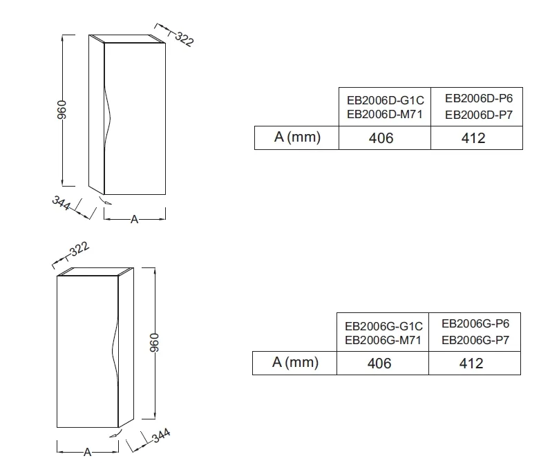 Ш40,6 (отделка лак)/41,2 (отделка дуб) x Г34,4 x В96 cм.