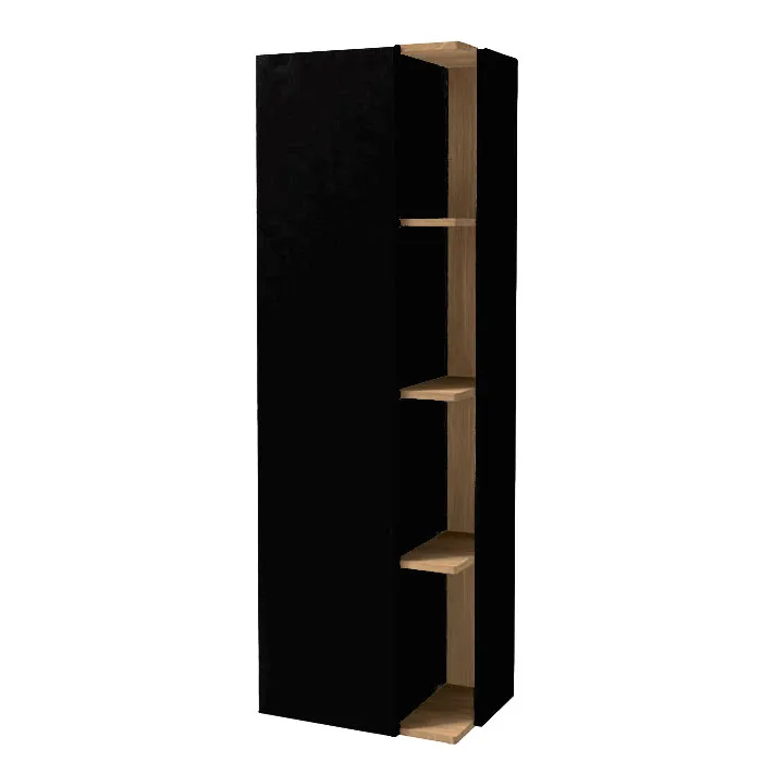 - Одна распашная дверца со встроенными доводчиками. Четыре внутренние четыре внешние полочки изготовлены из цельного дерева.