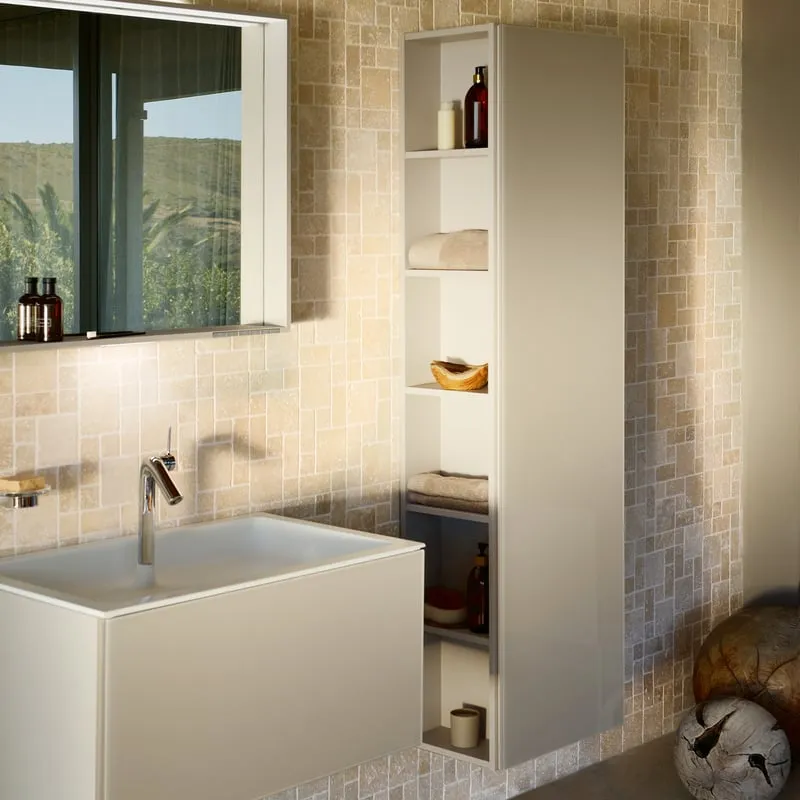 Эти покрытия обладают не только эстетическим эффектом, но и практическими преимуществами: устойчивость к пятнам и отпечаткам, лёгкость ухода, защита от влаги, долговечность. Это делает мебель Keuco привлекательным выбором даже для комнат с повышенной влажностью.