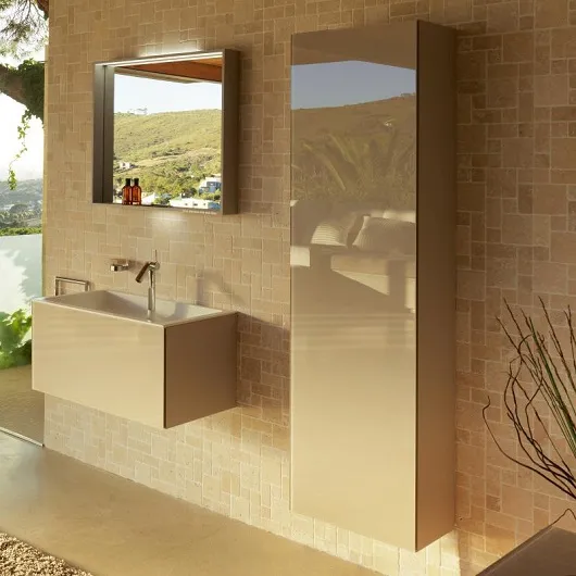 Keuco использует разнообразные поверхности, специально разработанные для ванной комнаты: текстурированный лак, высокоглянцевое покрытие, мягкий матовый сатин-лак, декоративное покрытие, а также стекло и натуральную древесину.