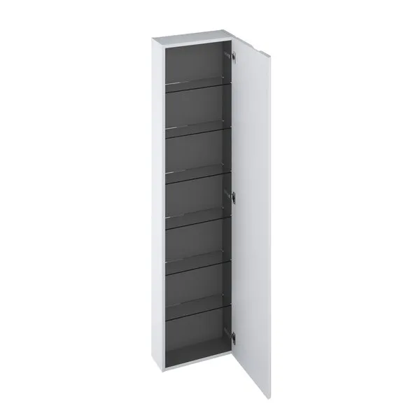 Шкаф SB Balance 400 с шестью полками из дымчатого стекла выпускается в белом / белом или белом / графитовом исполнении. Внутреннее пространство шкафа всегда в графитовом цвете. Поставляется в сборе, включая монтажный комплект (винты, петли, заглушки). Шкаф крепится на стену.