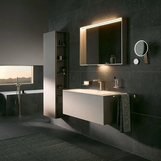 Эти покрытия обладают не только эстетическим эффектом, но и практическими преимуществами: устойчивость к пятнам и отпечаткам, лёгкость ухода, защита от влаги, долговечность. Это делает мебель Keuco привлекательным выбором даже для комнат с повышенной влажностью.