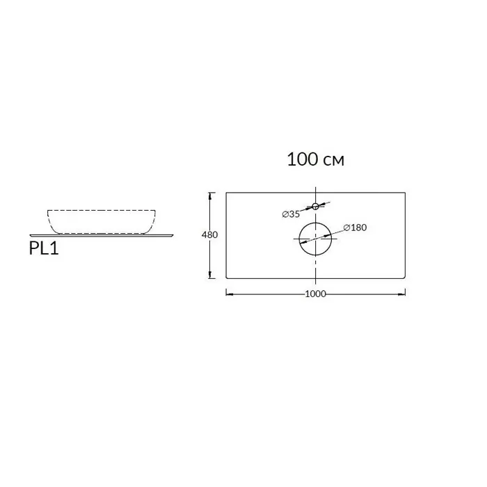 Столешница из керамогранита для накладных раковин Риальто темный серый лаппатированный Kerama Marazzi Plaza PL1.VT93\100