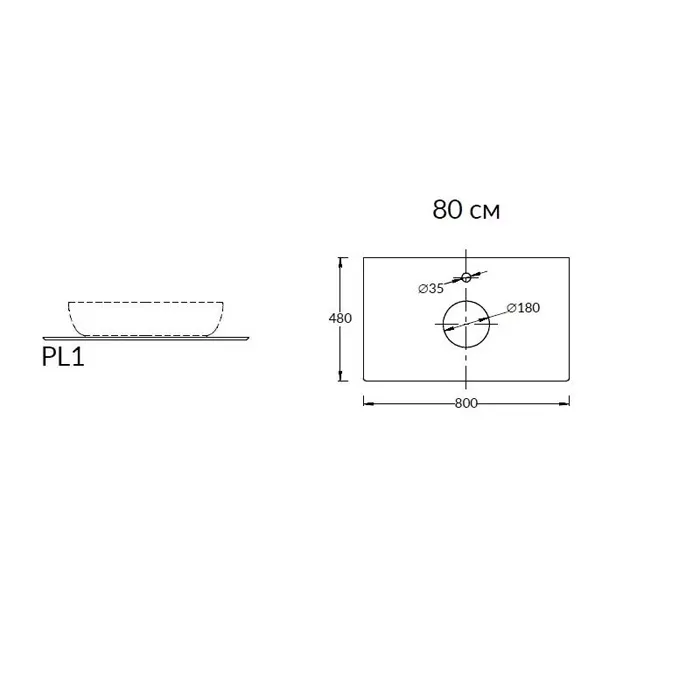 Столешница из керамогранита для накладных раковин Риальто темный серый лаппатированный Kerama Marazzi Plaza PL1.VT93\80
