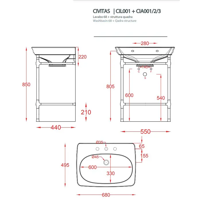 - Отверстия под смеситель: 1