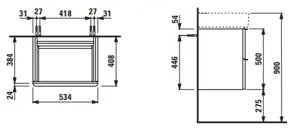 База под раковину 8.1028.2 подвесная, 2 ящика, 53.5*41*52h, темный вяз-103/ручка-алюминий