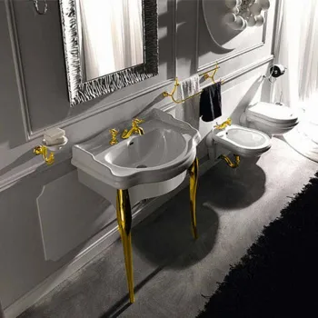 Комплект мебели белый глянцевый для раковины Kerasan Retro 73, ножки, арт.736291, золото, упаковка-2 коробки 7362K6