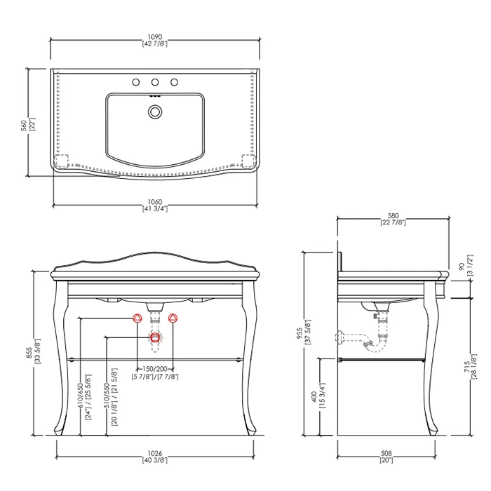 Консоль Devon&Devon Jacqueline Ceramic 109х58хh85,5/95,6 керамич. раков.с 1отв., бел с метал.структ.напольн,, св.золото полка прозр DEJACQ1FBIOTTR