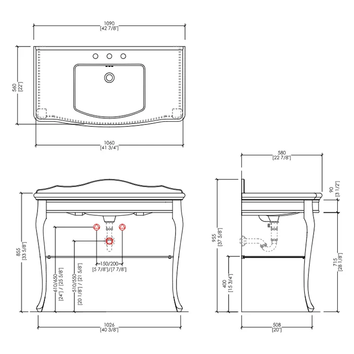 Консоль Devon&Devon Jacqueline Ceramic 109х58хh85,5/95,6 керамич. раков.с 3отв., бел.с металл.структ.напольн, хром полка дымчатая DEJACQ3FBICRFU