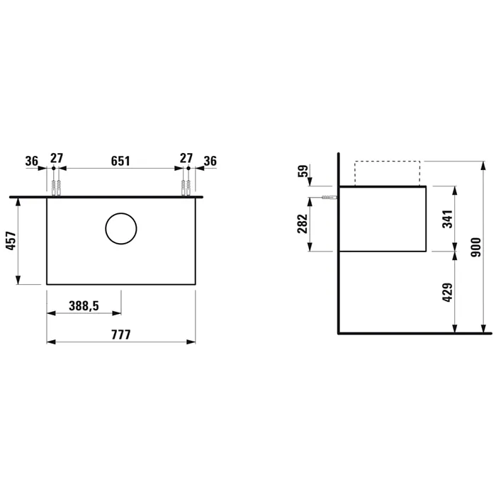 Laufen SONAR шкафчик под раковину, 775х455х340 мм, 1 ящик, с отв. в центре, для 812340, 812341, 812342, 812343, титан и черный мрамор