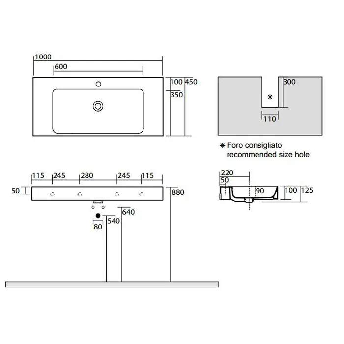 - Отверстия под смеситель: 1