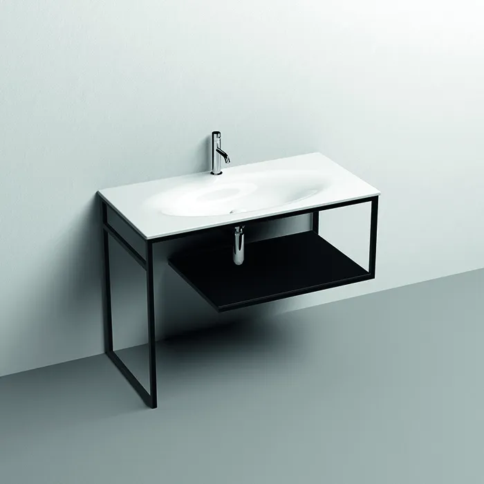Структура Kerasan Shape Louise 1020х520 , напольная, нержавеющая сталь, полка черная, черный матовый 9333K1