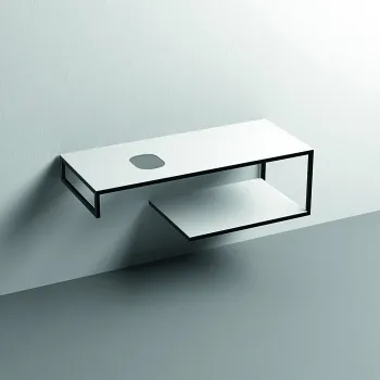 Структура металлическая подвесная Kerasan Louise 120, нерж сталь, с полкой, с отв под раковину,с полотенцедерж, белый матовый 9322k4