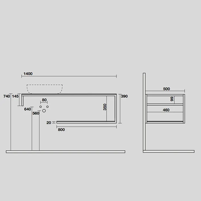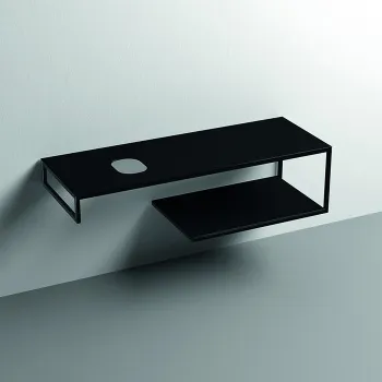 Структура металлическая подвесная Kerasan Louise 140, нерж сталь, с полкой, с отв под раковину,с полотенцедерж, черный матовый 9322k5