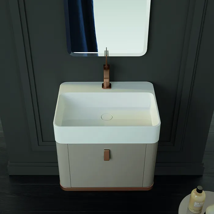 Тумба для раковины Vitage Milldue Edition Tailor 450х470х360, 1 выдвижной ящик, ручка матовое розовое золото, глянцевый argilla 7542.116.331