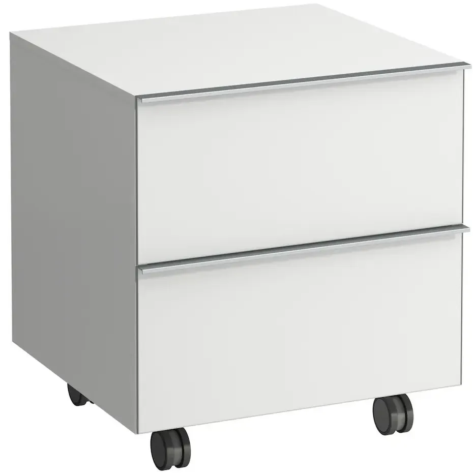 Тумба на колесиках, 2 ящика, 53.5*52*58h, белый матовый-100/ручка-алюминий