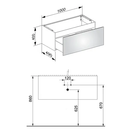 Шкаф под умывальник для встраиваемых умывальников 1 выдвижной ящик спереди