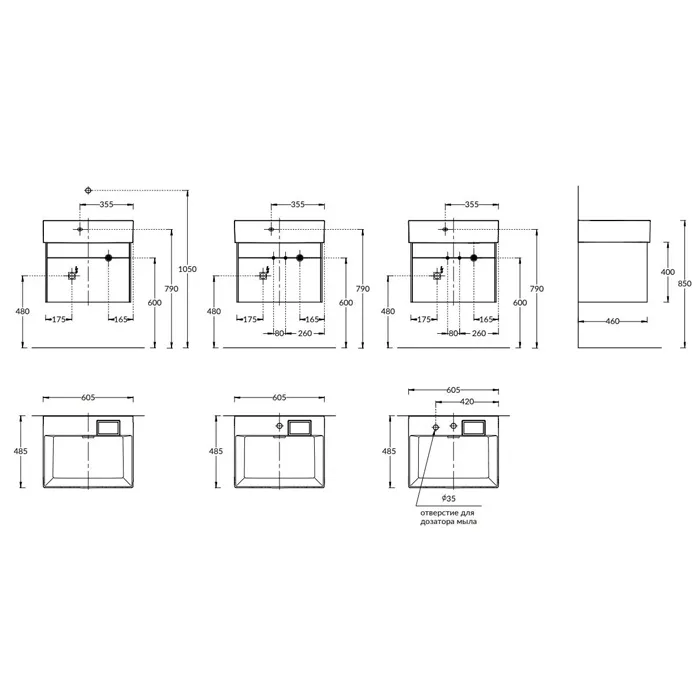 - Отверстия под смеситель: Без отверстий