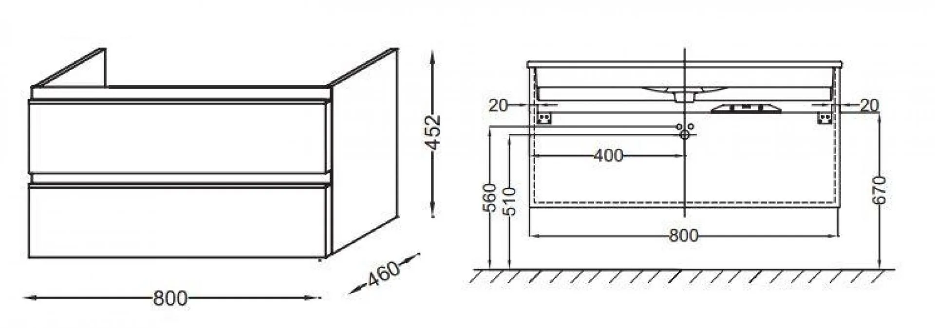 Тумба под раковину 80 см Jacob Delafon Vox EB2028-RA-E15 чёрное дерево черный