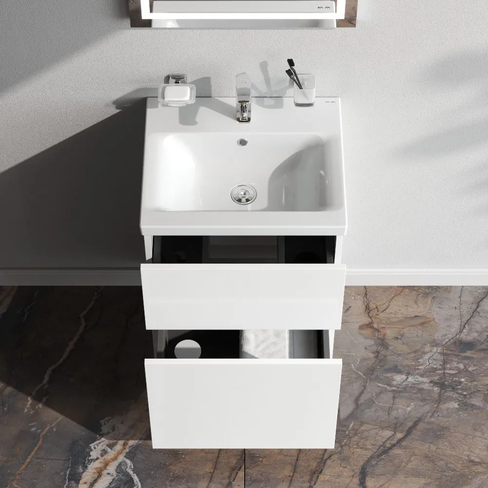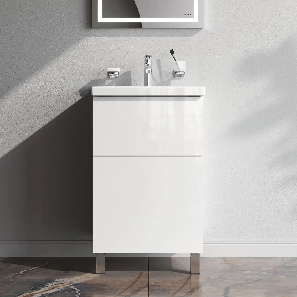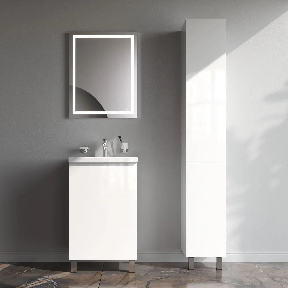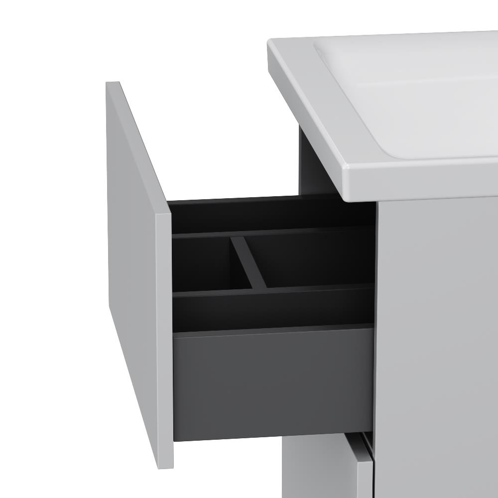 Напольная тумба бренда AM.PM коллекции Gem изготовлена из влагостойкого ЛДСП. Внутреннее пространство двух вместительных ящиков представлено в цвете антрацит" с антискользящим эффектом. В верхнем ящике находится удобный органайзер для хранения гигиенических принадлежностей. Благодаря системе отделений органайзера каждый предмет имеет свое место что обеспечивает порядок и удобство при использовании. Такая система хранения позволяет экономить место и помогает поддерживать чистоту ванной комнаты. Фурнитура push-to-open - открытие ящика легким нажатием на фасад. Направляющие скрытого монтажа обеспечивают плавное выдвижение ящиков. Материал тумбы - влагостойкая ЛДСП. Покрытие фасада и корпуса - ламинат. Размер (Ш/Г/В): 500x408x810