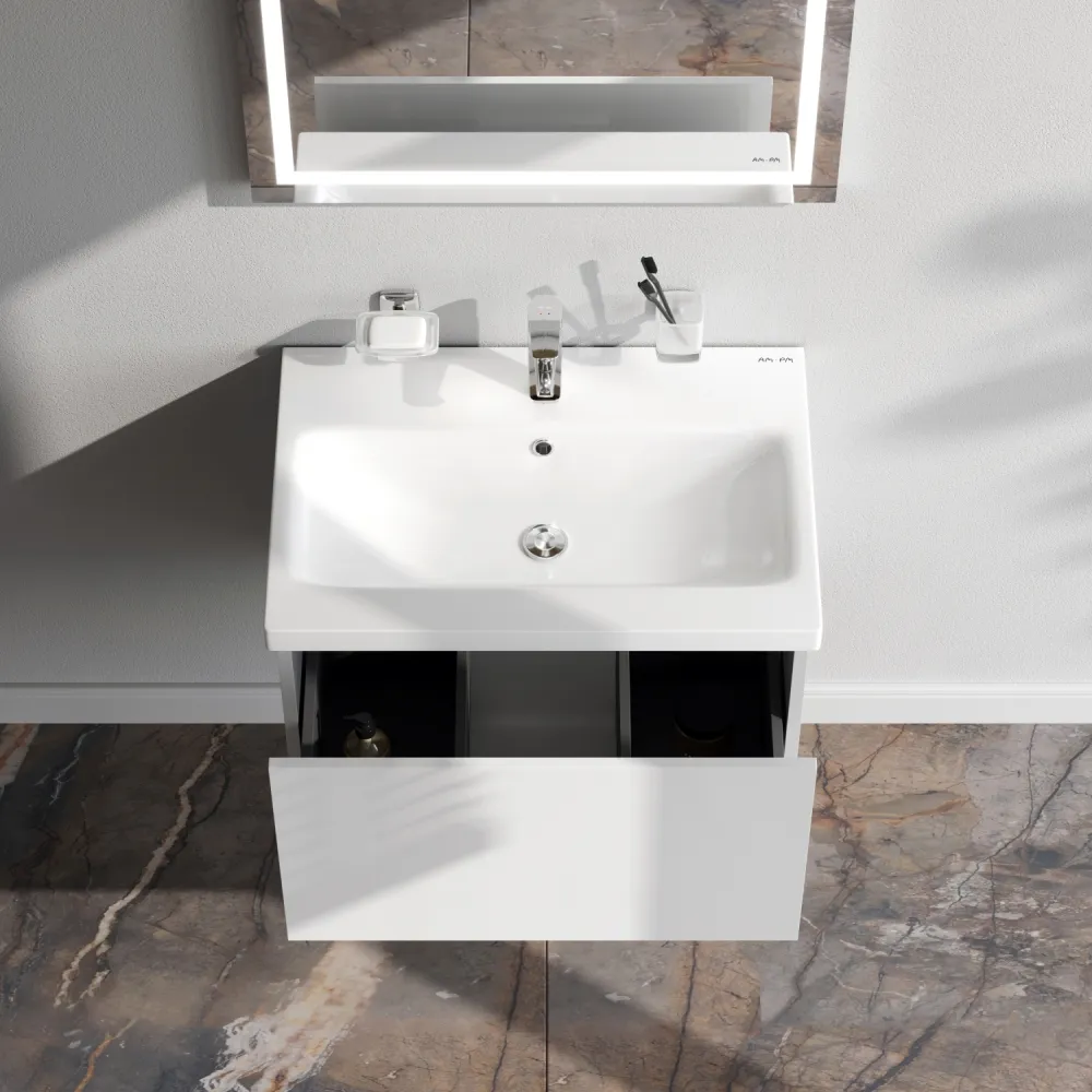 Хотите выделиться при ограниченном бюджете? Трендовый дизайн мебели для ванной комнаты Gem не уступает комплектам по гораздо более высокой цене.