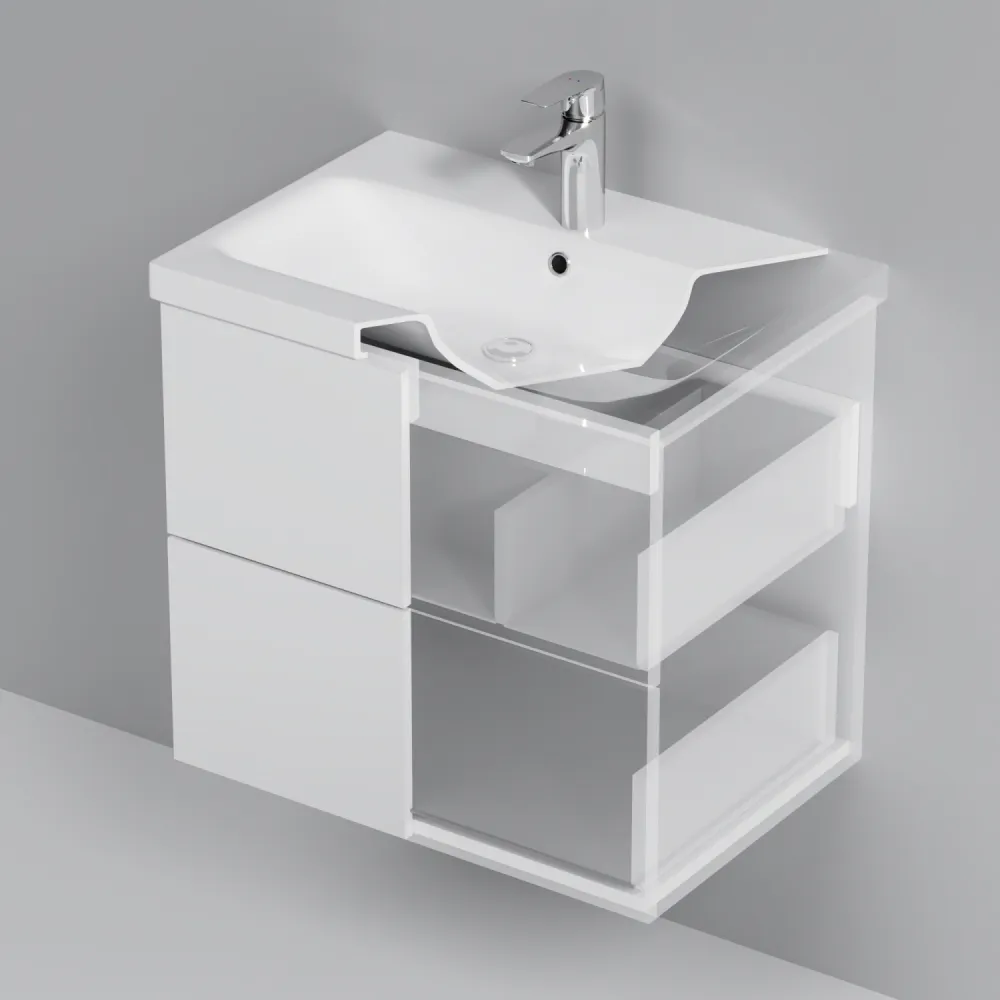 Хотите выделиться при ограниченном бюджете? Трендовый дизайн мебели для ванной комнаты Gem не уступает комплектам по гораздо более высокой цене.