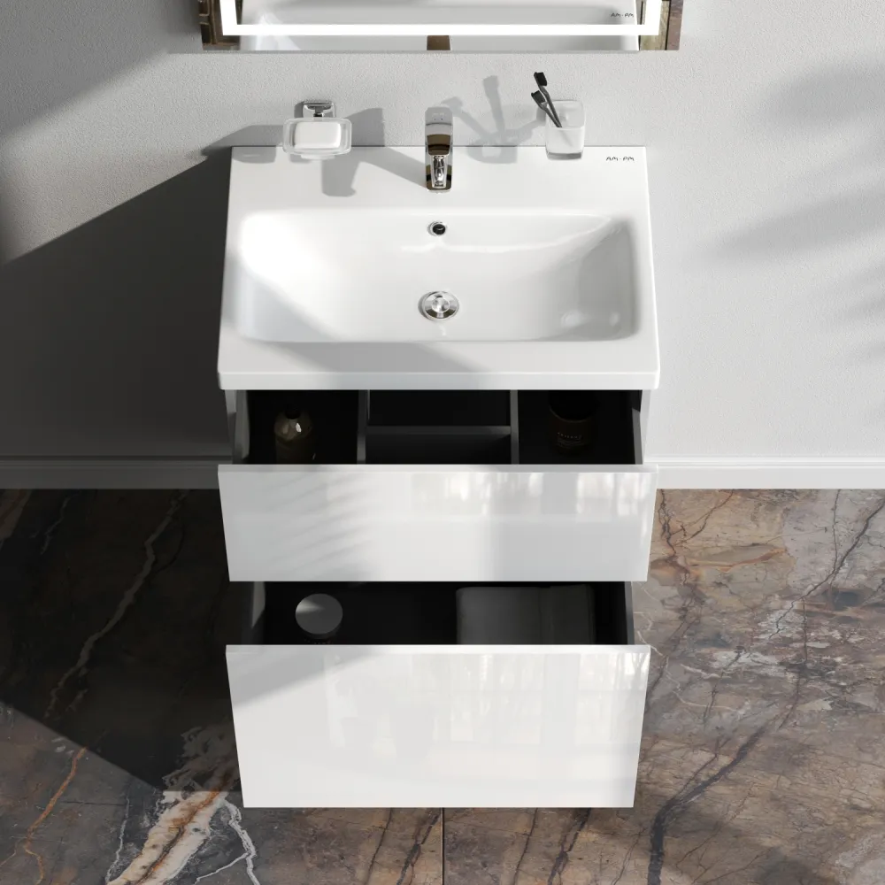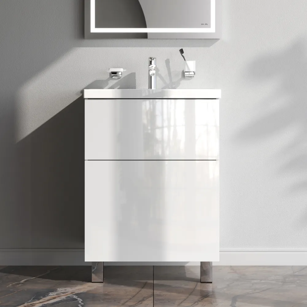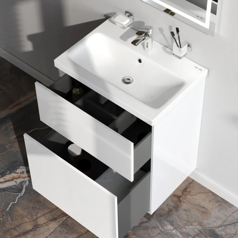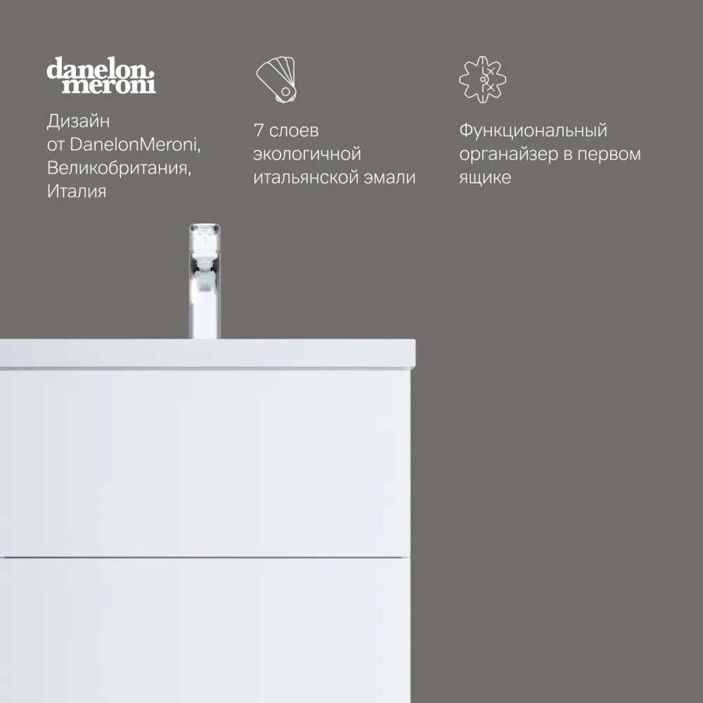Хотите выделиться при ограниченном бюджете? Трендовый дизайн мебели для ванной комнаты Gem не уступает комплектам по гораздо более высокой цене.