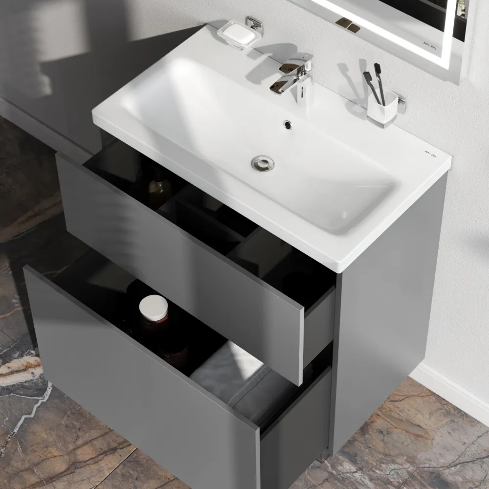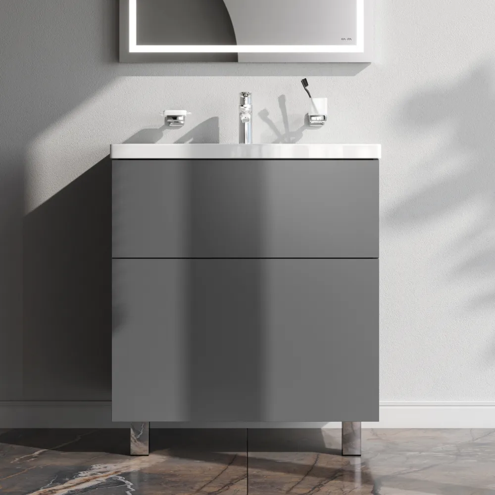 Напольная мебель для ванной Am.Pm GEM идеально подойдет тем кто предпочитает минимализм в интерьере и выбирает абсолютный комфорт. Современный европейский дизайн от DanelonMeroni (Великобритания/Италия). Самая компактная и функциональная раковина на рынке: проекция всего 42 см при максимальной глубине чаши!