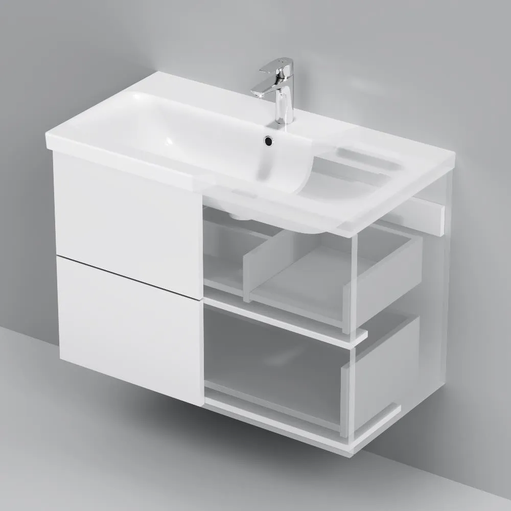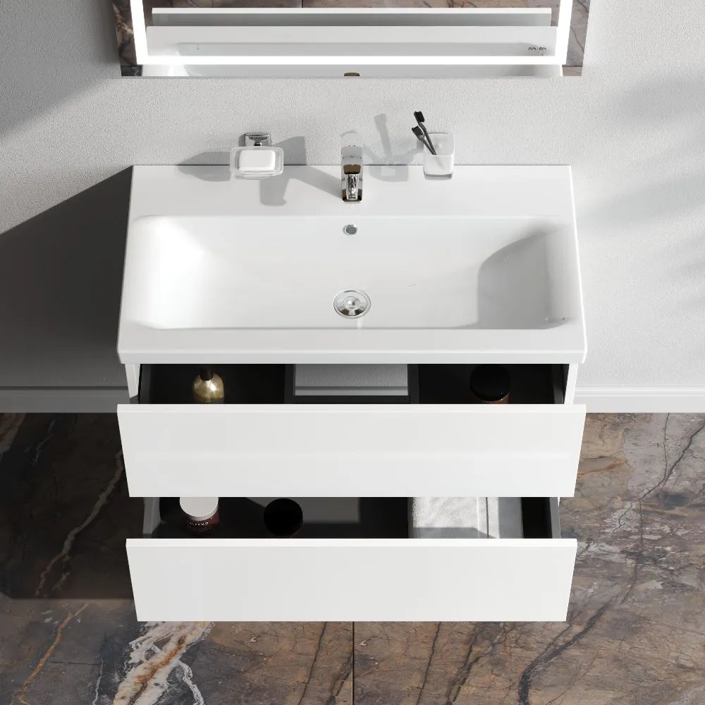 Подвесная тумба бренда AM.PM коллекции Gem идеально подойдет тем кто предпочитает минимализм в интерьере. Современный европейский дизайн от студии DanelonMeroni (Великобритания/Италия). Фурнитура push-to-open - открытие ящика легким нажатием на фасад. Два ящика с антискользящим покрытием цвета антрацит" – европейский стандарт.