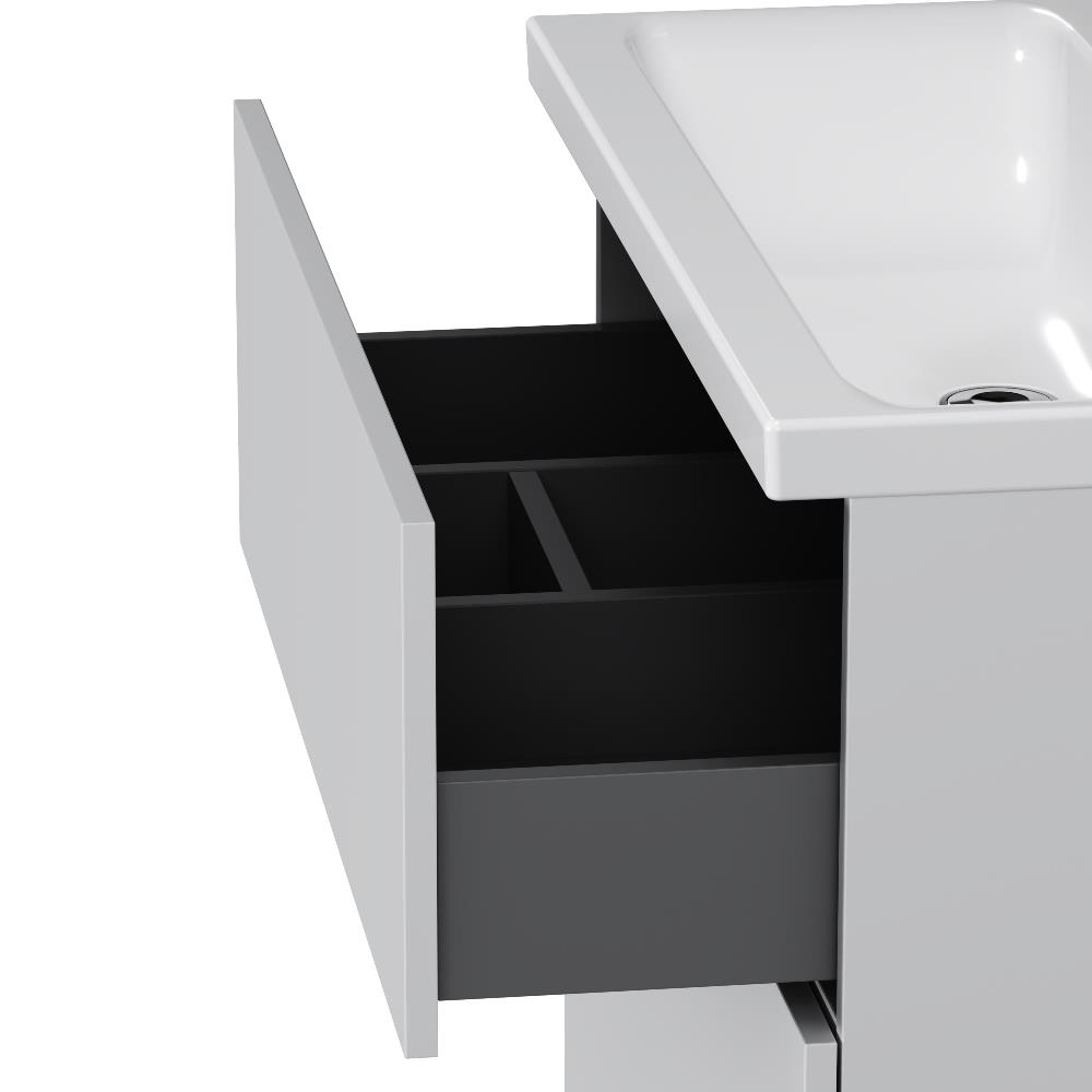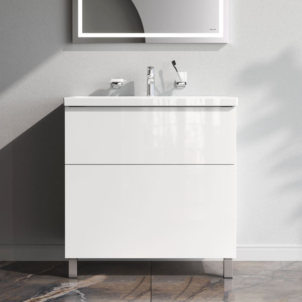 Напольная тумба бренда AM.PM коллекции Gem изготовлена из влагостойкого ЛДСП. Внутреннее пространство двух вместительных ящиков представлено в цвете антрацит" с антискользящим эффектом. В верхнем ящике находится удобный органайзер для хранения гигиенических принадлежностей. Благодаря системе отделений органайзера каждый предмет имеет свое место что обеспечивает порядок и удобство при использовании. Такая система хранения позволяет экономить место и помогает поддерживать чистоту ванной комнаты. Фурнитура push-to-open - открытие ящика легким нажатием на фасад. Направляющие скрытого монтажа обеспечивают плавное выдвижение ящиков. Материал тумбы - влагостойкая ЛДСП. Покрытие фасада и корпуса - ламинат. Размер (Ш/Г/В): 800x408x810