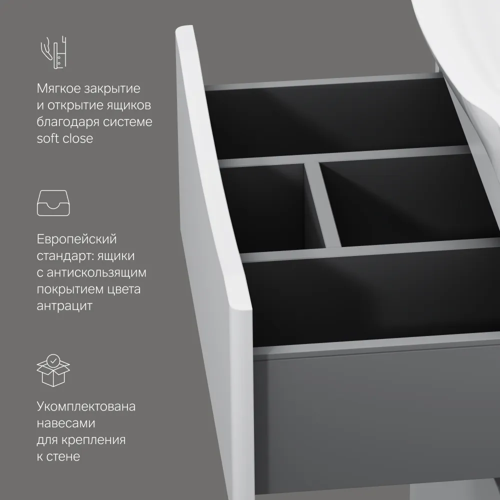 - Фурнитура: механизм soft-close доводчика