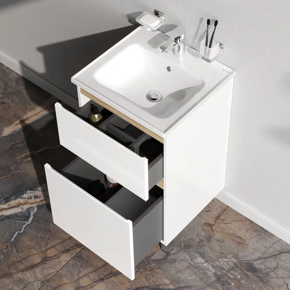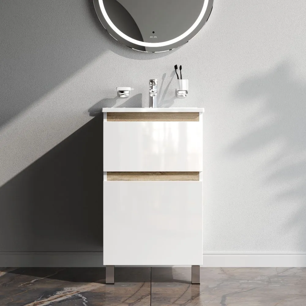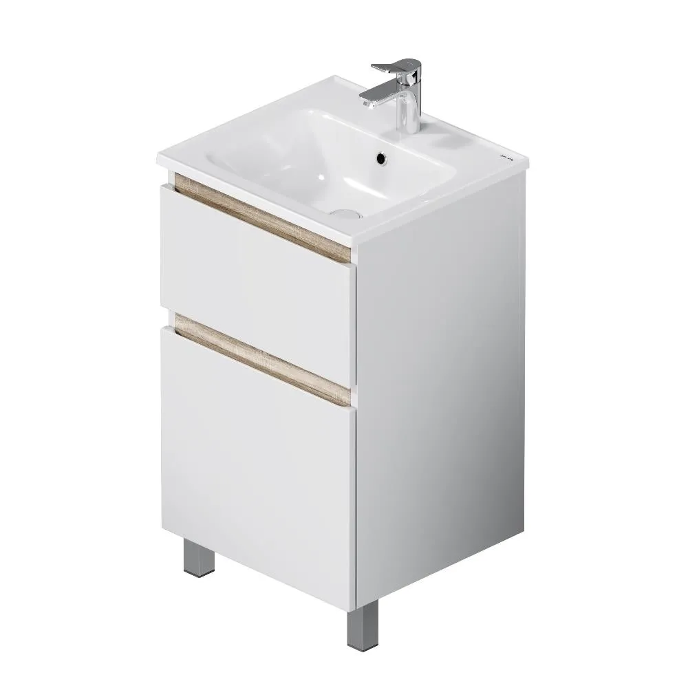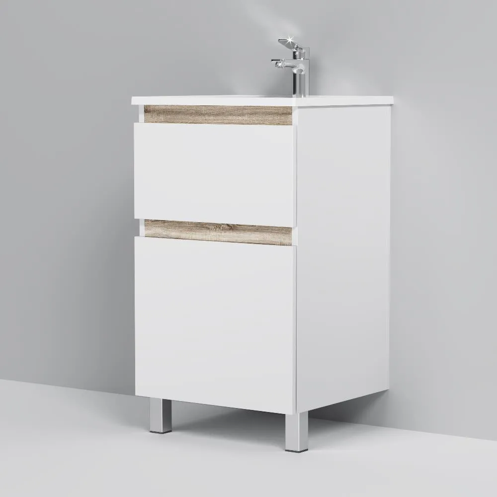 Напольная тумба бренда AM.PM коллекции X-Joy отличается эстетичным сочетанием цветов и фактур от дизайн-агентства Danelon Meroni: белые глянцевые фасады дополнены отделкой под светлое дерево. Функциональный органайзер в первом ящике позволит хранить необходимые косметические средства под рукой и в полном порядке. Внутреннее покрытие каждого ящика выполнено в современном цвете антрацит" и имеет противоскользящее покрытие.? Материал изделия - МДФ ЛДСП. Размер тумбы (Ш/Г/В): 475x445x830. Цвет тумбы - белый глянец.