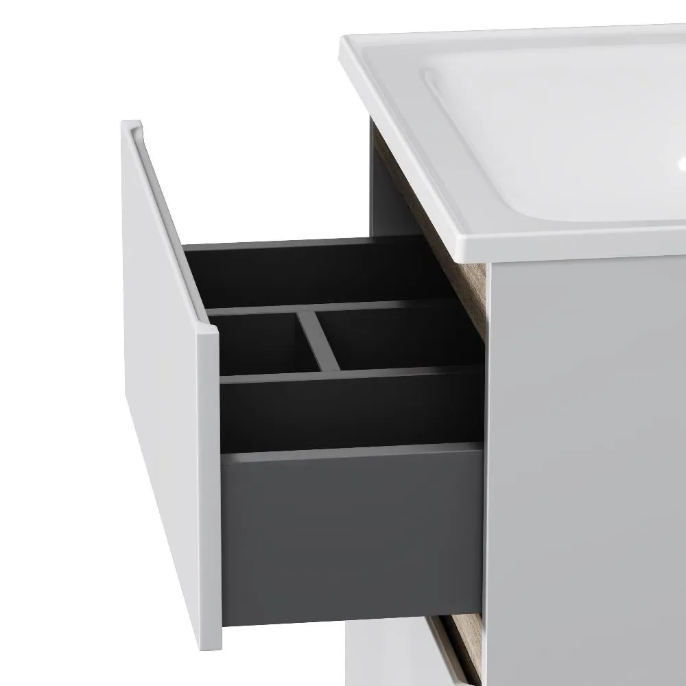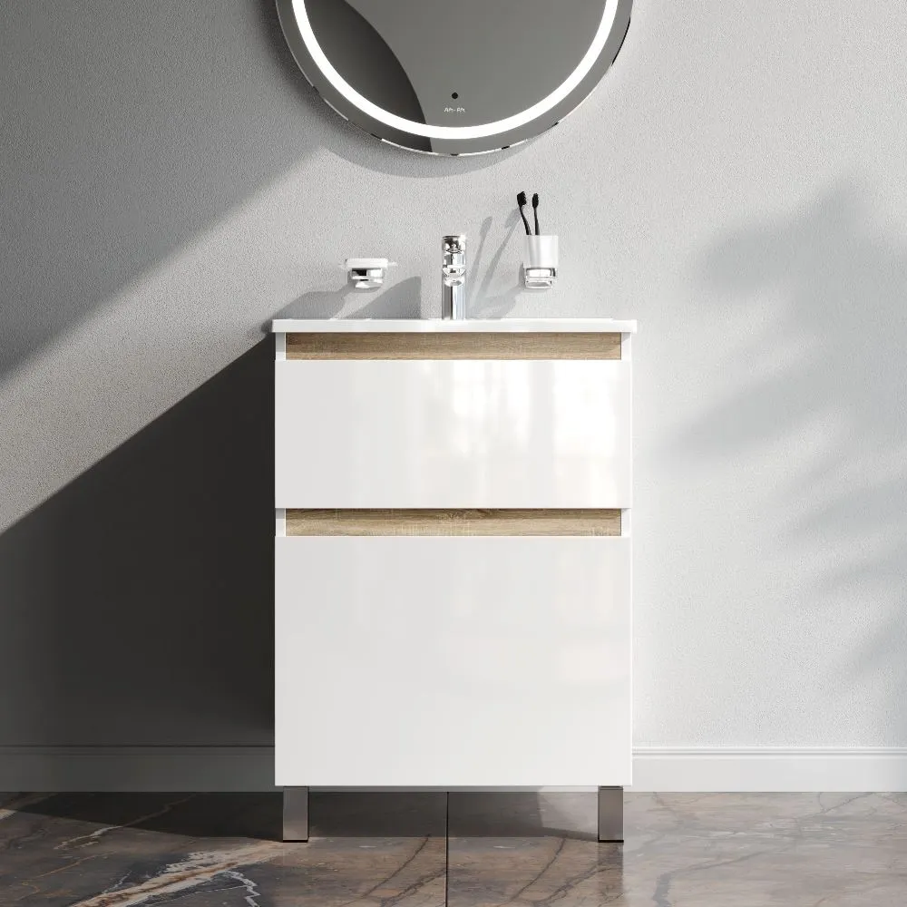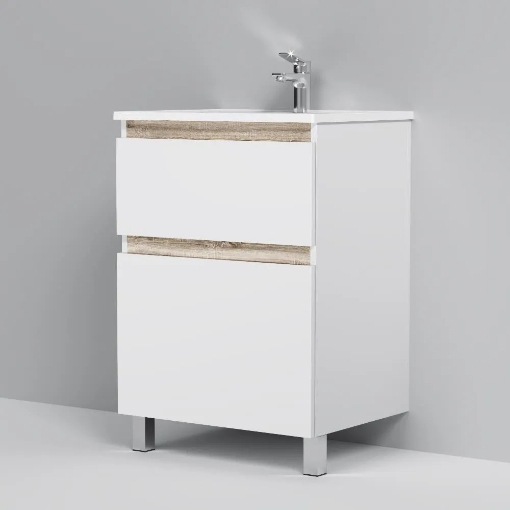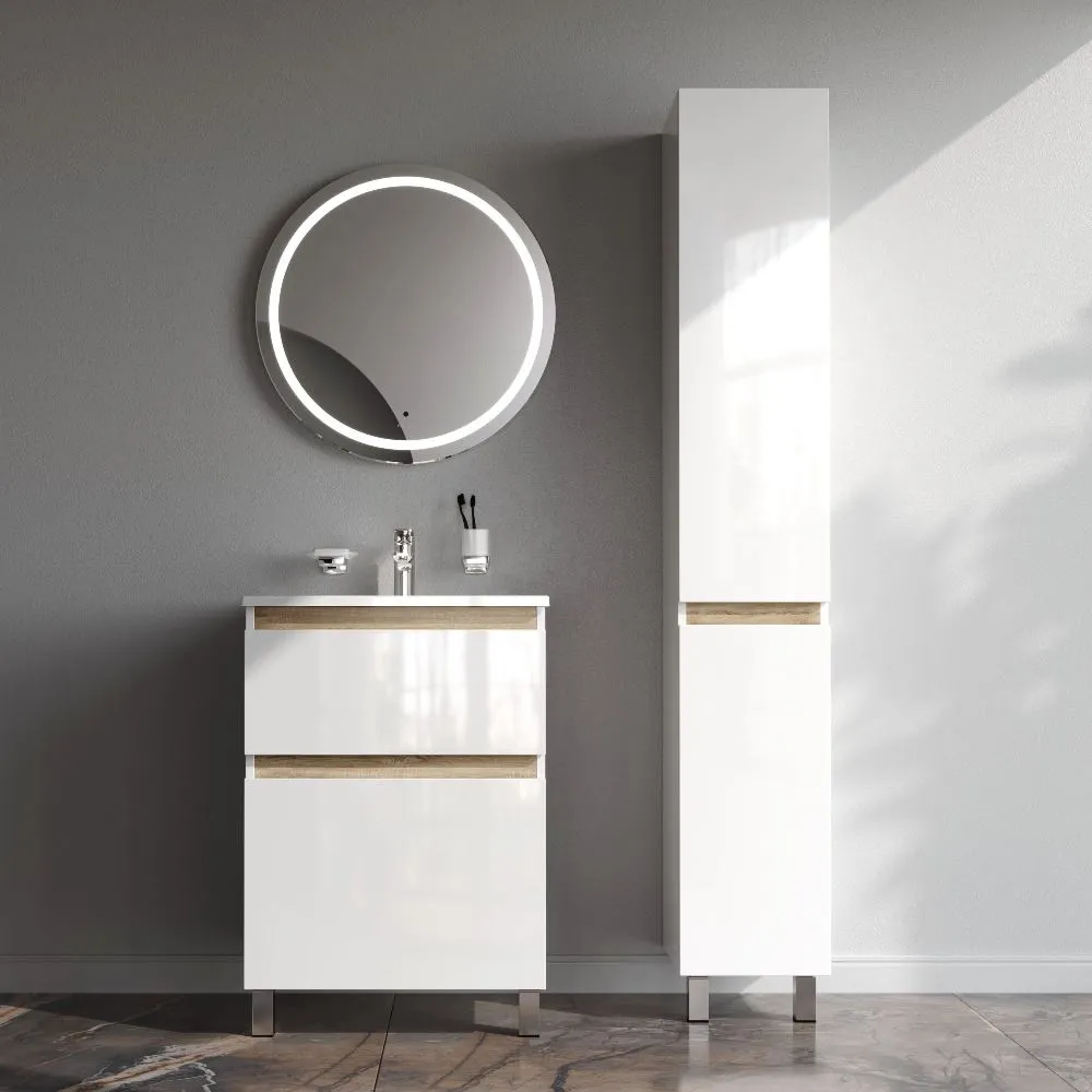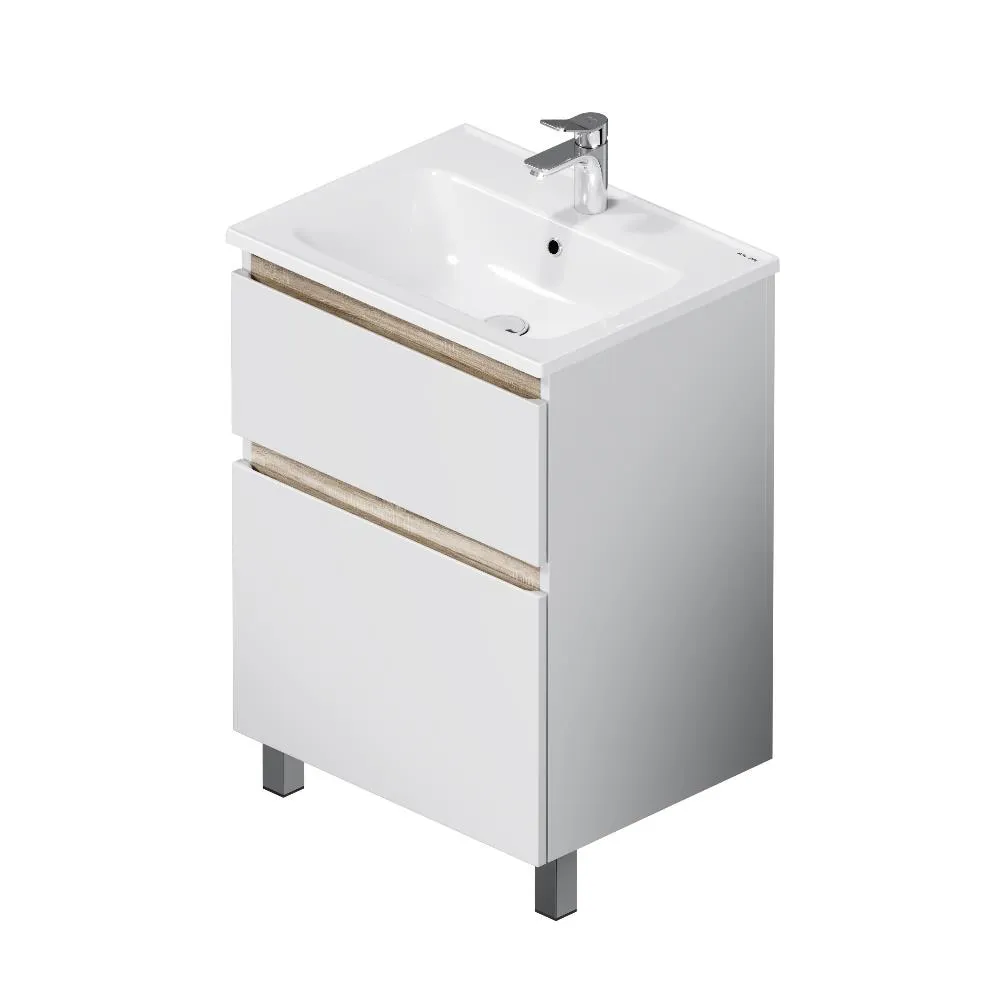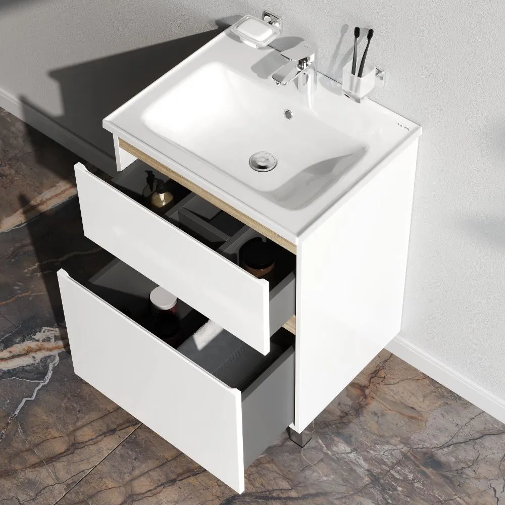 Напольная тумба бренда AM.PM коллекции X-Joy отличается эстетичным сочетанием цветов и фактур от дизайн-агентства Danelon Meroni: белые глянцевые фасады дополнены отделкой под светлое дерево. Функциональный органайзер в первом ящике позволит хранить необходимые косметические средства под рукой и в полном порядке. Внутреннее покрытие каждого ящика выполнено в современном цвете антрацит" и имеет противоскользящее покрытие.? Материал изделия - МДФ ЛДСП. Размер тумбы (Ш/Г/В): 575x445x830. Цвет тумбы - белый глянец.