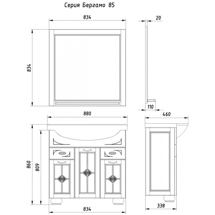 Тумба под раковину ASB-Woodline Бергамо 85см 9712