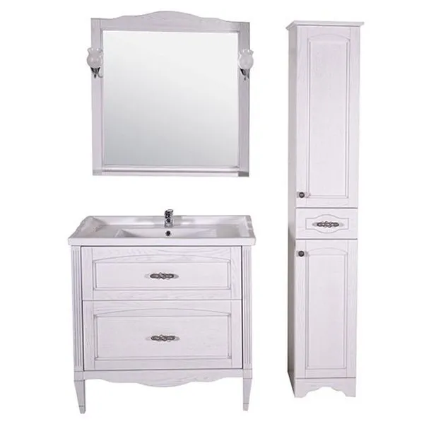 Тумба под раковину ASB-Woodline Римини Nuovo 80см белый патина серебро 10182