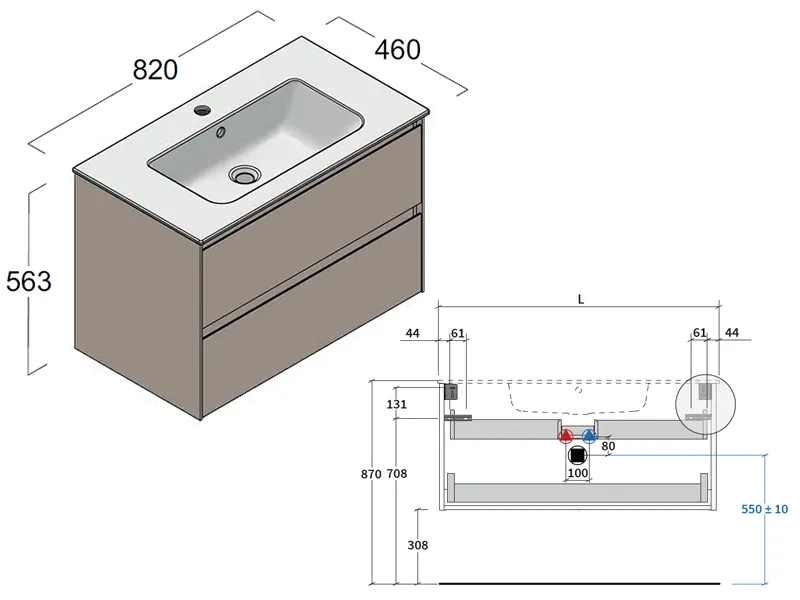 Тумба под раковину Berloni Bagno WAY BLOCK WAKBS2CHDIC 1428