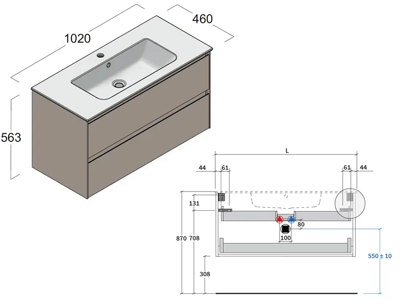 Тумба под раковину Berloni Bagno WAY BLOCK WAKBS2CKDIC 1442