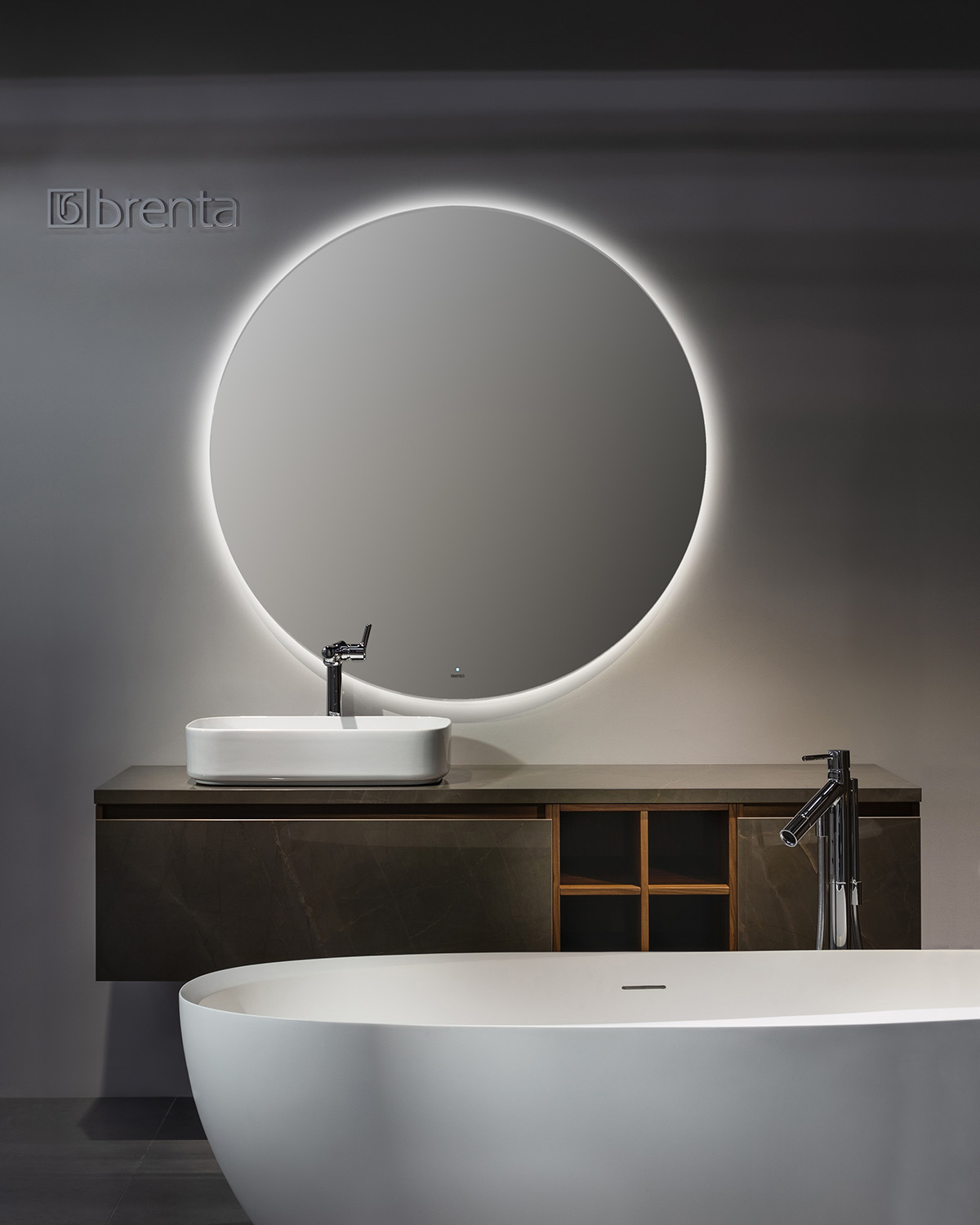 Fusion коллекция, которая позволяет комбинировать разные типы отделки в одном изделии. Фасады в коллекции выполнены из керамогранита, а корпус может быть как в краске, так и шпоне. Это в итоге дает более 600 комбинаций цветов и отделок. В коллекции присутствуют большое количество модулей которыми комплектуется тумба. При этом они могут быть трех разных высот и двух глубин, что позволяет при заказе тумбы определенной длины, получить большое количество ее модификаций. Фасады, выполненные из керамогранита тонкие, элегантные, но в тоже время прочные и функциональные. Из этого же материала выполнена и столешница.