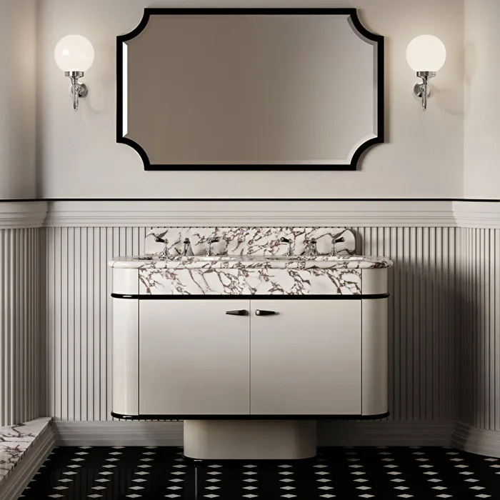 Тумба под раковину двойная Devon&Devon Liberty 124.5х100.8 со столешницей из мрамора CALACATTA VIOLA