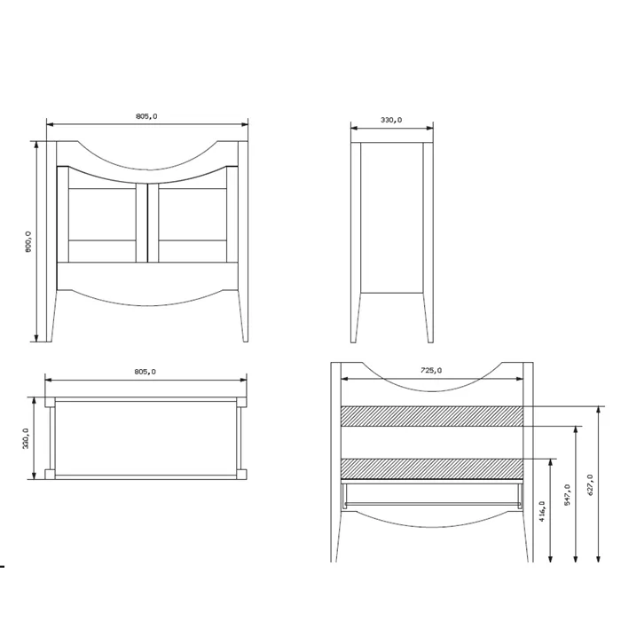 Тумба под раковину Eban Simona 80.5х80х33 1 ящик, 2 дверки ,без ручек, доводчики Blum, tortora FBSSM080ODJ6*3