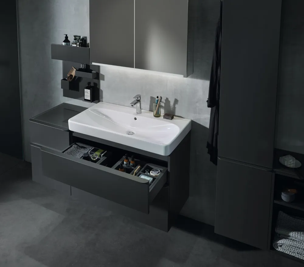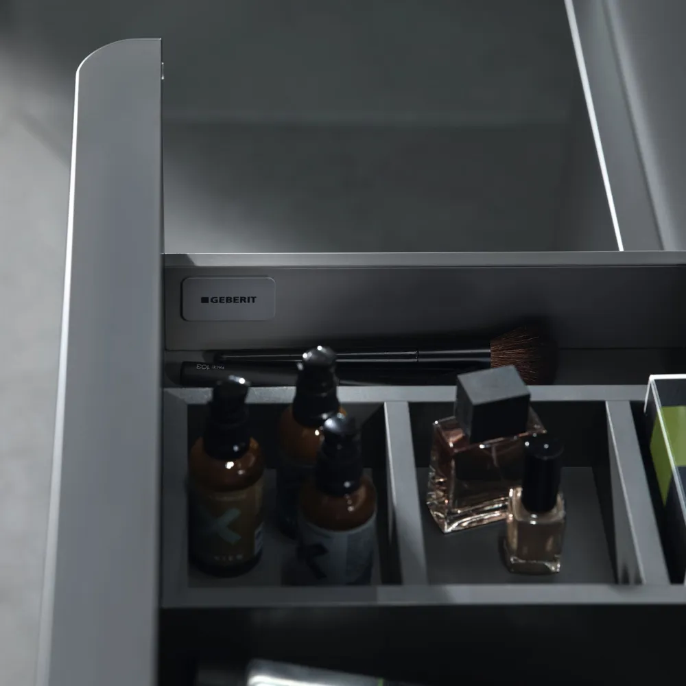500.354.JK.1 Geberit Smyle Square Шкафчик под раковину с двумя выдвижными ящиками, для раковины 90 см, высота 61.7 см, темно-серый матовый