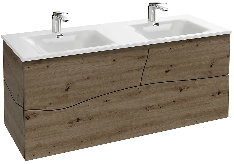 Тумба под раковину Jacob Delafon Sherwood EB1834RU-P13 широкая и стильная. Модель идеально подойдет для раковины с двумя чашами. Материал тумбы натуральный массив дуба. Ящики с нажимным механизмом открывания и доводчиком, обеспечивающим плавное закрывание.