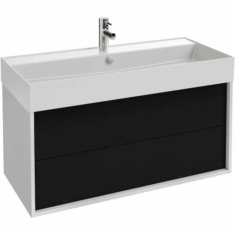 Тумба под раковину Jacob Delafon Vivienne EB1585-N18-S14 предназначена для подвесного монтажа. Корпус выполнен в белом цвете с черной фасадной частью. Материал корпуса МДФ. Ящики с механизмом доводчика, обеспечивающим плавное закрывание.