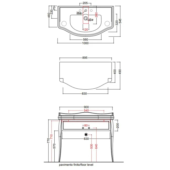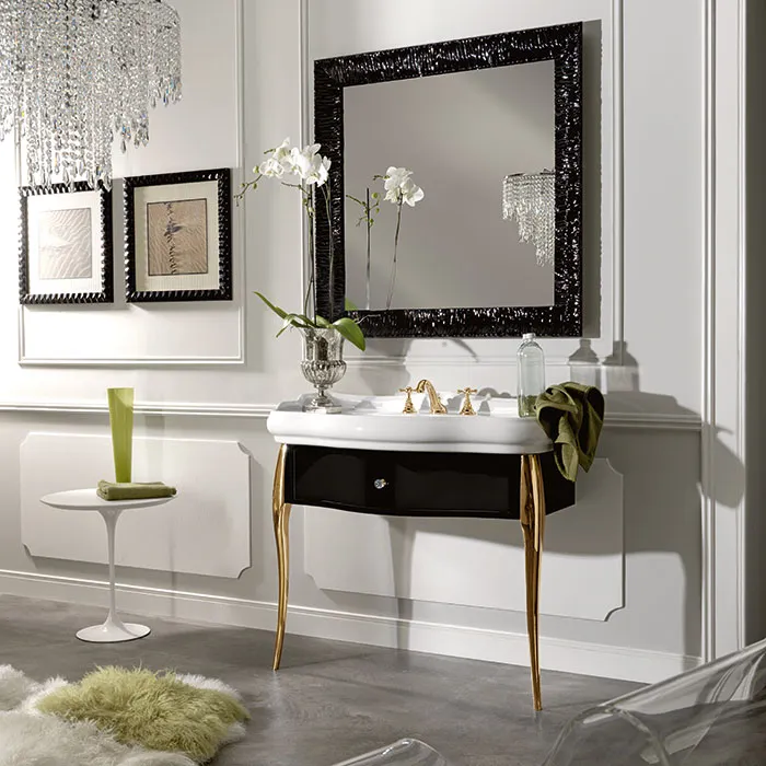 Тумба под раковину Kerasan Retro 100, 1050, черный глянц, ножки, арт.736291,:золото, ручки: кристалл/кольцо-золото, упаковка-2 коробки 7363K4