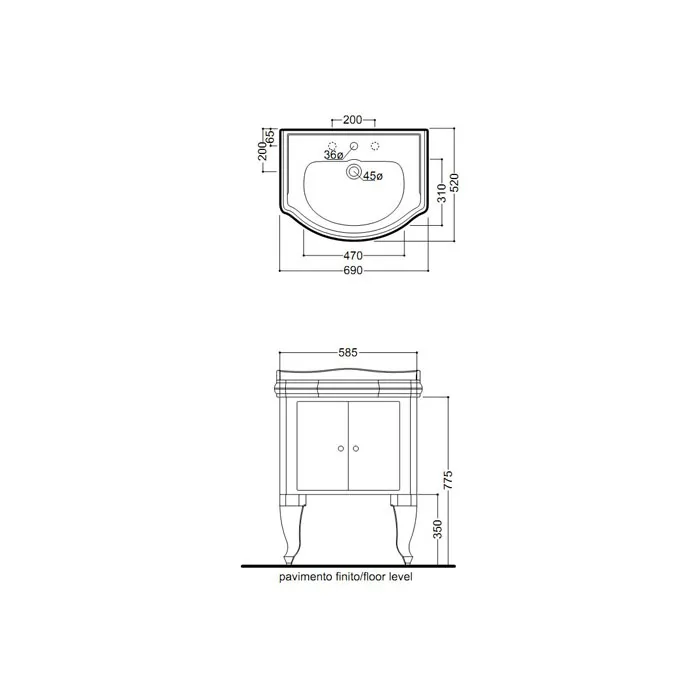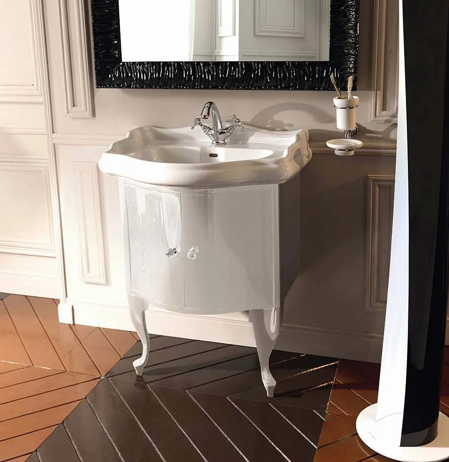 Тумба под раковину Kerasan Retro 7361 К5, база 69, 1046, белый глянцевый, ножки: белый, ручки: кристалл/кольцо-хром 7361K5