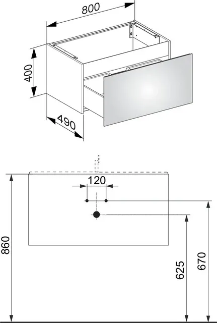 32961290000 PLAN Тумба под умывальник 800x490x400 мм инокс мат