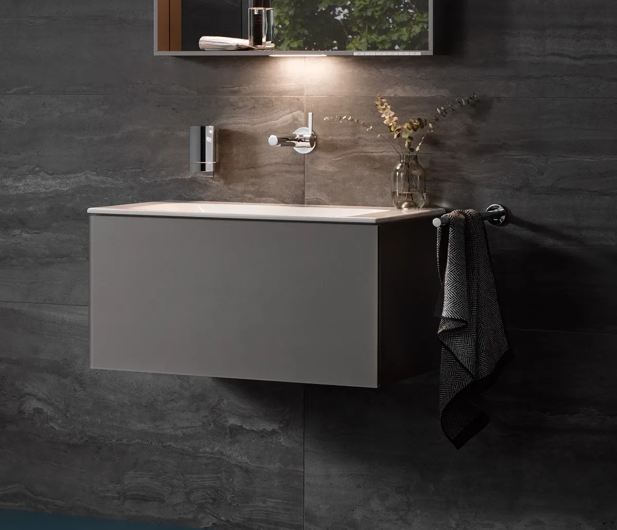 Эти покрытия обладают не только эстетическим эффектом, но и практическими преимуществами: устойчивость к пятнам и отпечаткам, лёгкость ухода, защита от влаги, долговечность. Это делает мебель Keuco привлекательным выбором даже для комнат с повышенной влажностью.