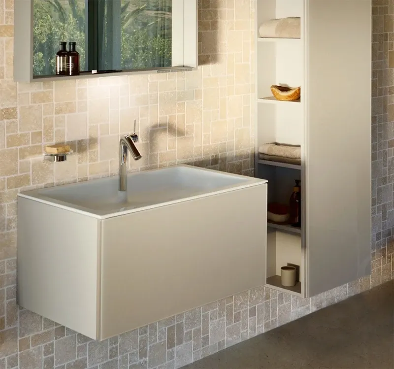 Эти покрытия обладают не только эстетическим эффектом, но и практическими преимуществами: устойчивость к пятнам и отпечаткам, лёгкость ухода, защита от влаги, долговечность. Это делает мебель Keuco привлекательным выбором даже для комнат с повышенной влажностью.